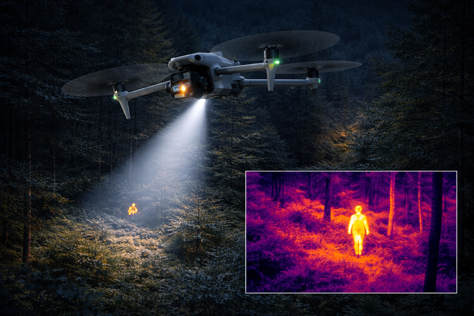 Ponúkame špecializovanú službu pátrania po nezvestných a stratených osobách pomocou profesionálneho dronu DJI Matrice 4T vybaveného termovíznou technológiou. Tá umožňuje rýchlu lokalizáciu osôb aj v náročných podmienkach, kde je bežné pátranie výrazne obmedzené.